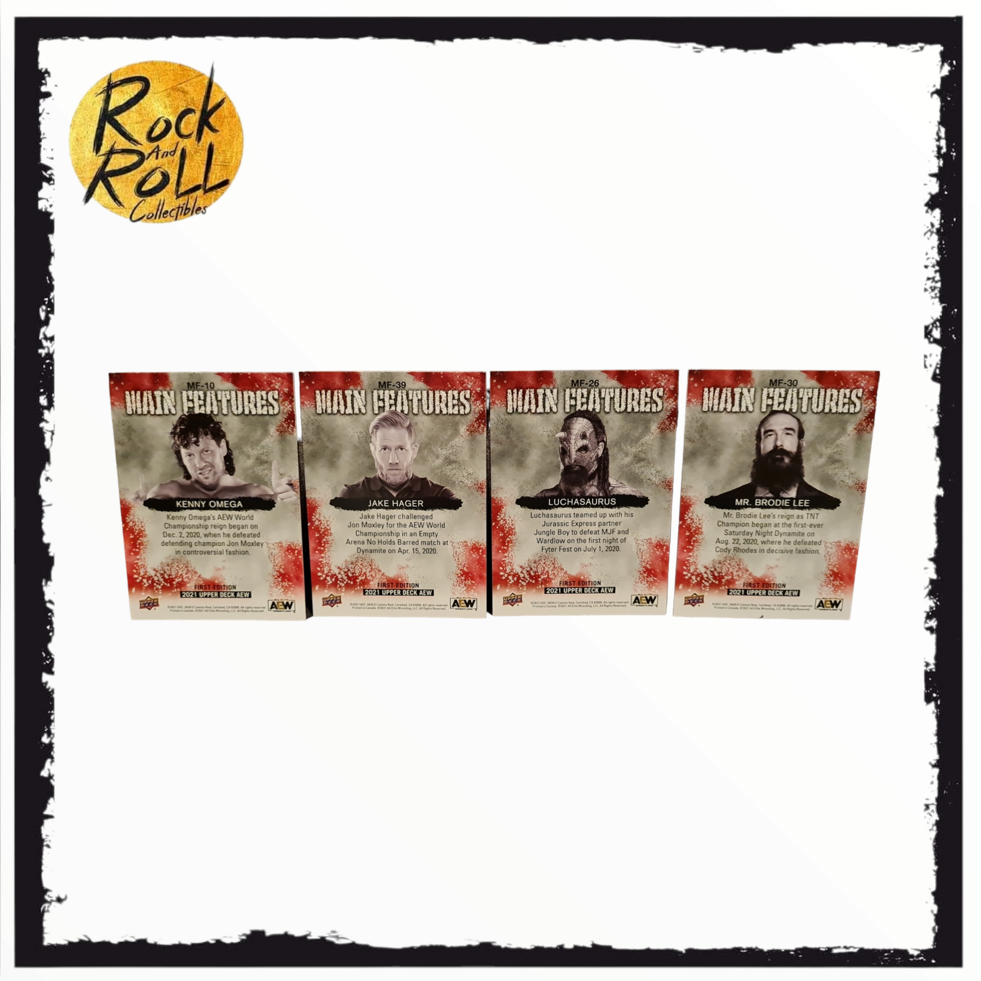 AEW 2021 Upper Deck First Edition - Gold Main Features - Kenny Omega, Jake Hager, Mr. Brodie Lee, Luchasaurus
