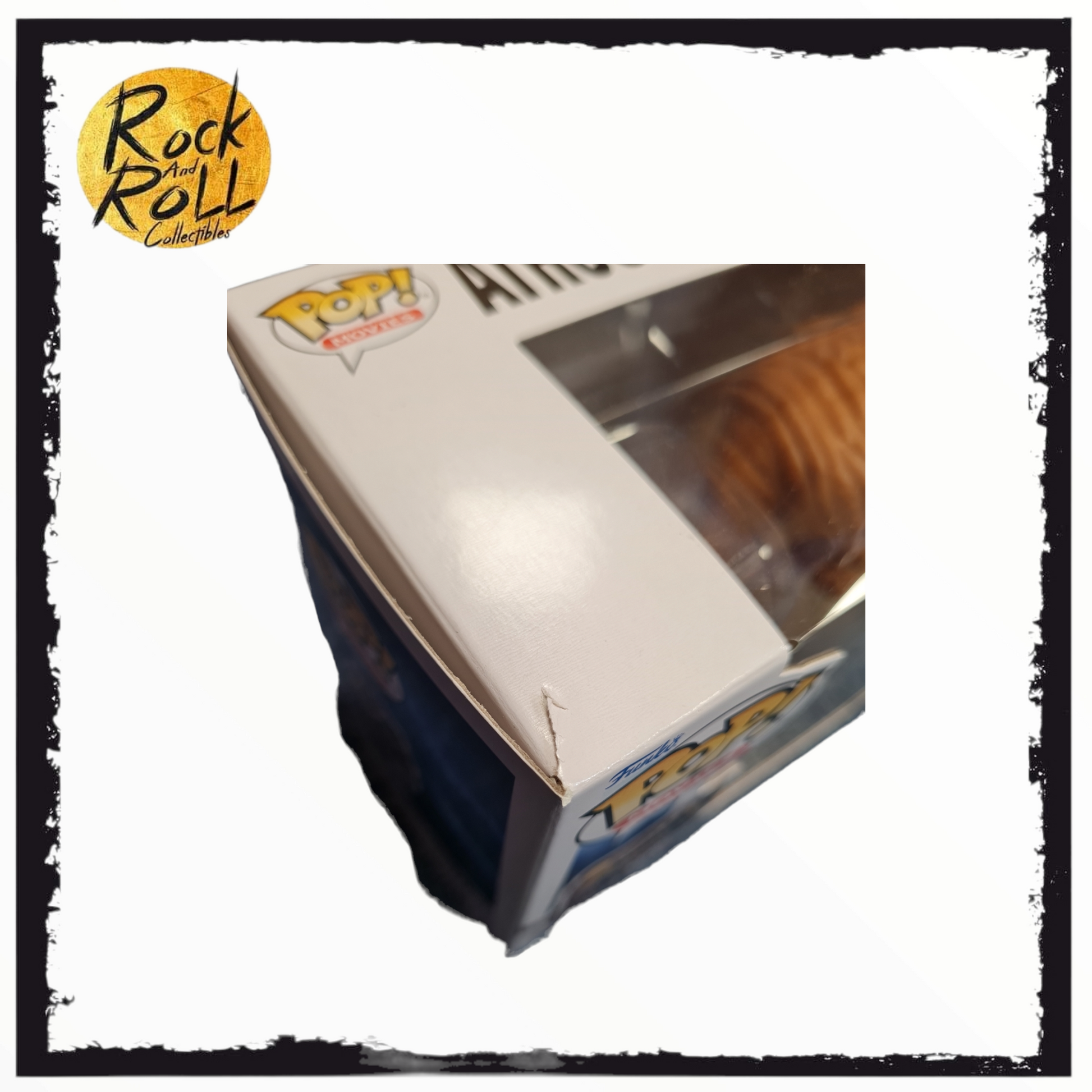 See photos - there is a tear to the box at the top as shown.