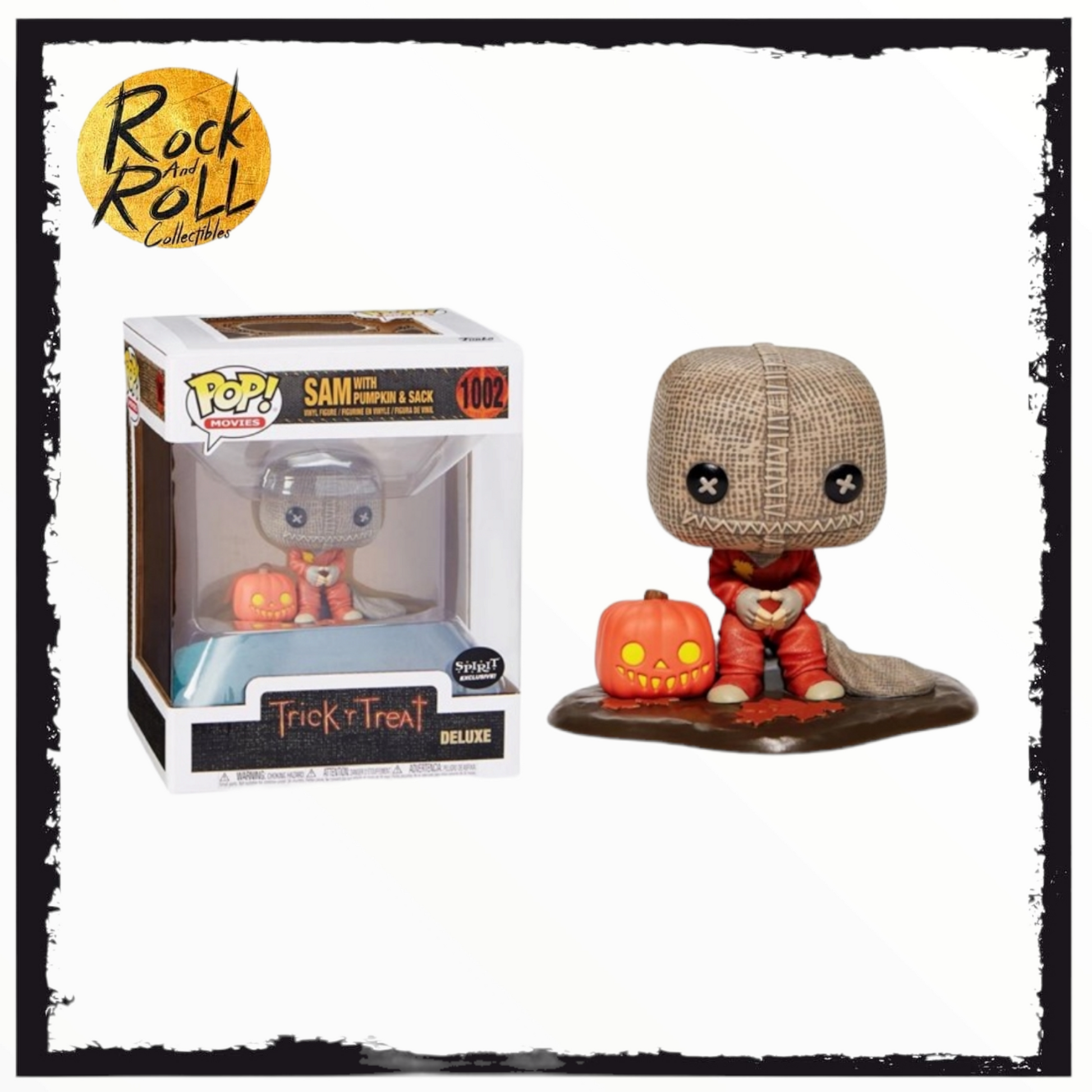 Trick 'r Treat Sam w/Pumpkin & Sack Deluxe Funko Pop #1002 Spirit Halloween Exclusive - Condition 8.5/10. There are signs of damage/wear to the box and/or window. This has a Spirit sticker.